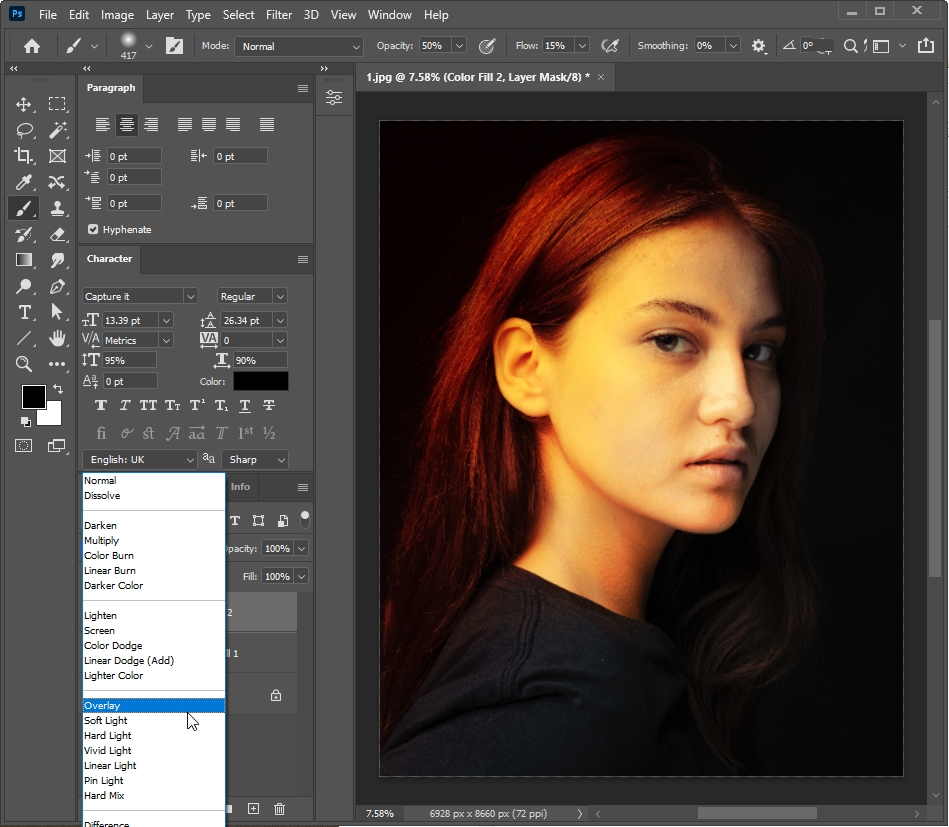 11. 덧칠한 빛을 블렌딩하여 자연스럽게 만들어 주세요.