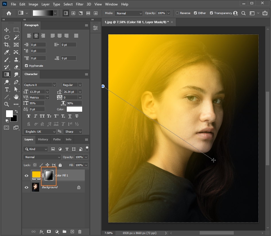 5. 빛 layer Mask 위로 그라데이션 효과를 주세요.