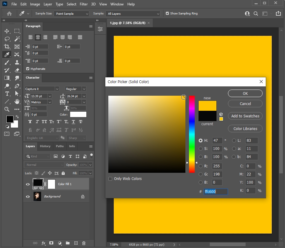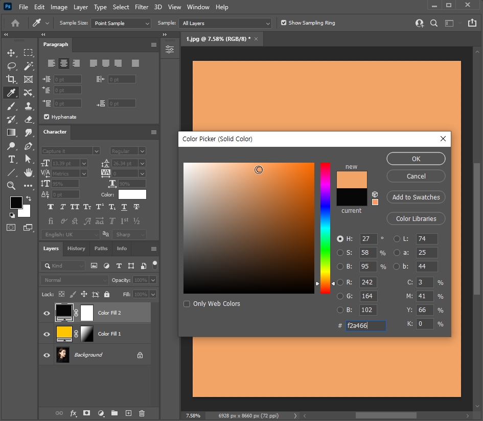 └ Color Picker 창 > 원하는 색상 선택
