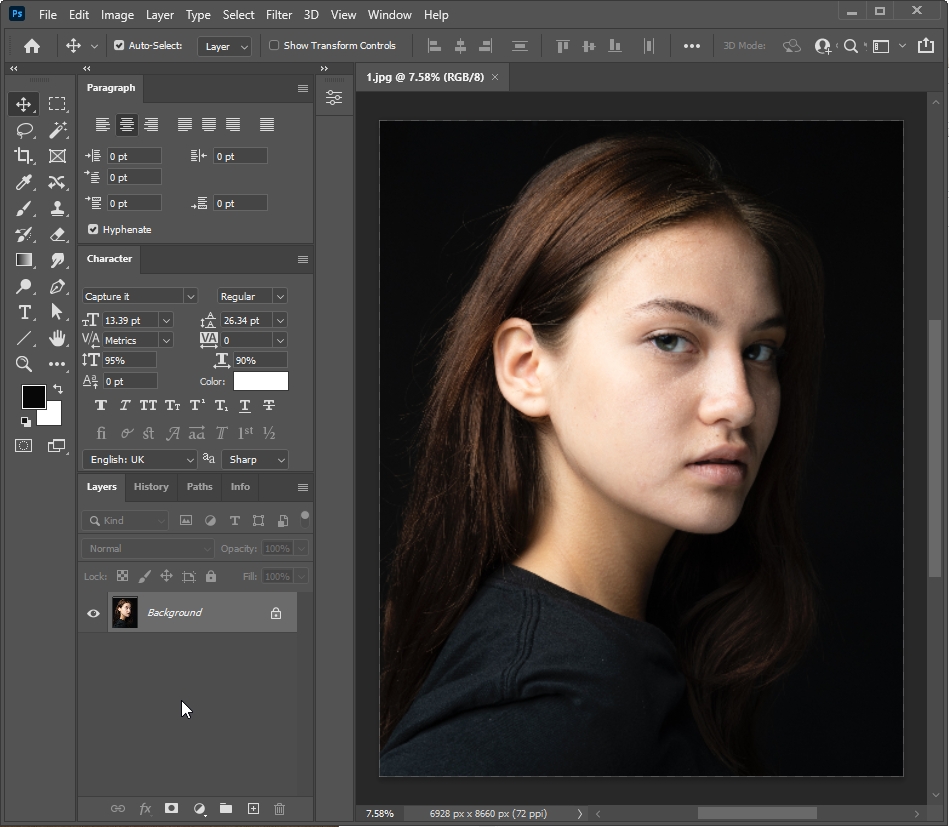 1. 포토샵에서 적용할 사진을 불러와 주세요.
