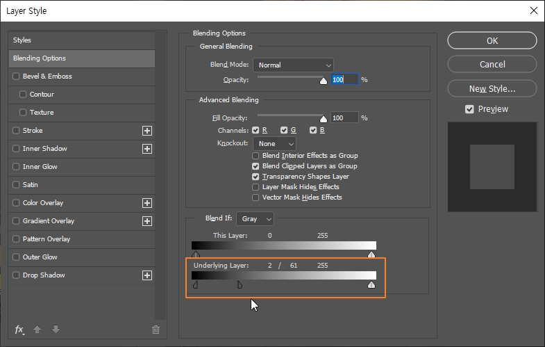> Underlying Layer 바를 이용해 블렌딩