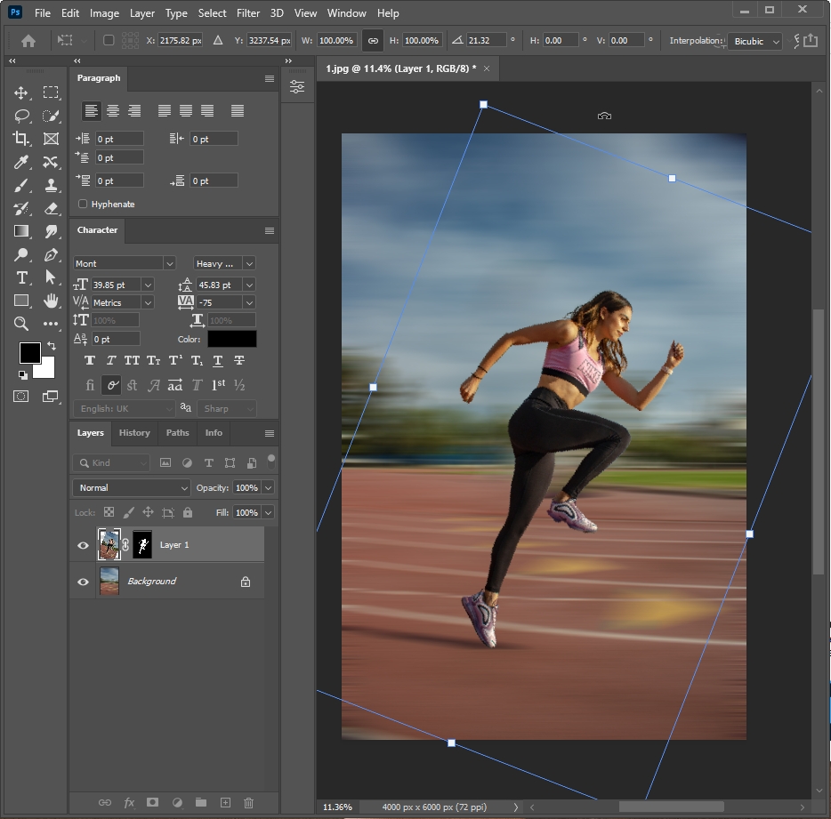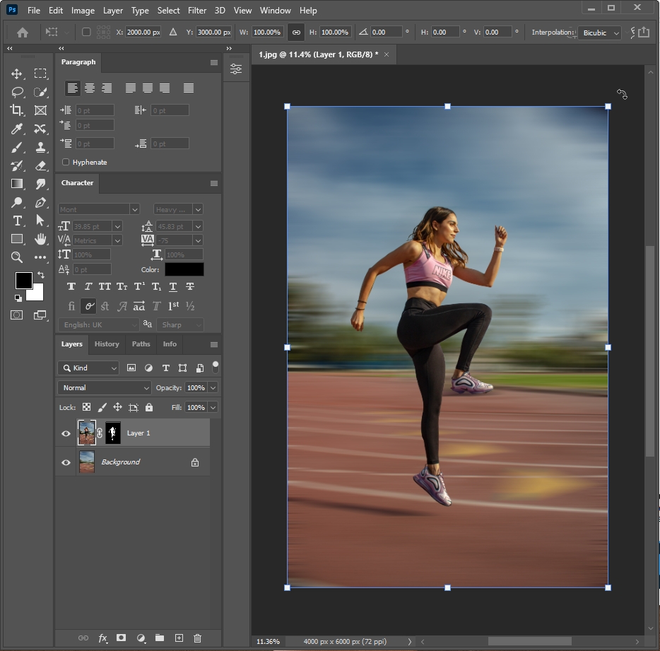 └ 피사체 Layer 선택 > 단축키 'Ctrl+T'