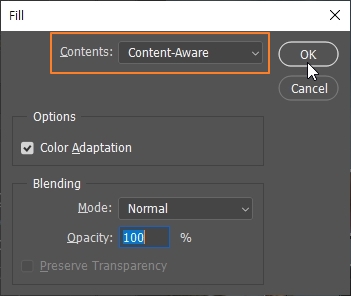 > Contents : Content-Aware 선택 후 OK