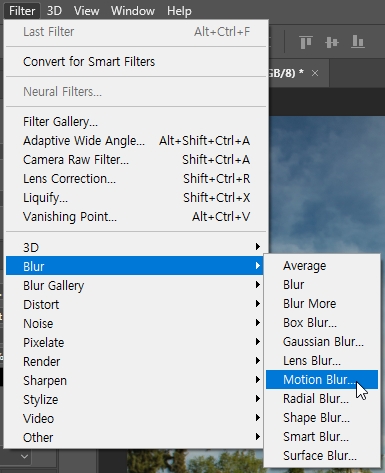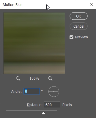 └ 배경 Layer 선택 > Filter > Blur > Motion Blur