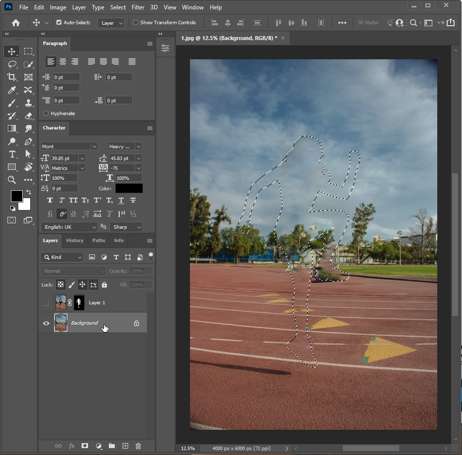 4. 피사체만 활성화되도록 Mask를 씌워주세요.