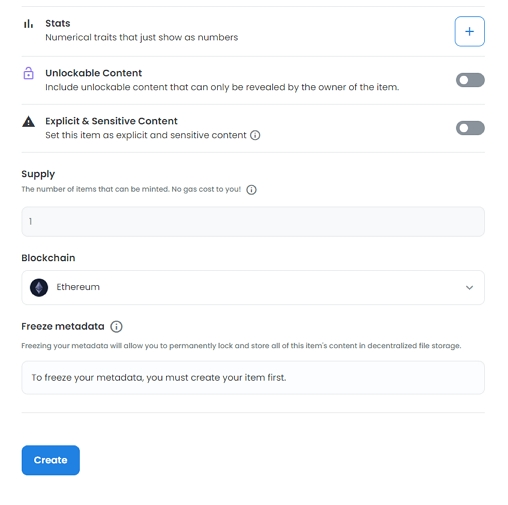 하단의 Create를 누르면 민팅은 끝!