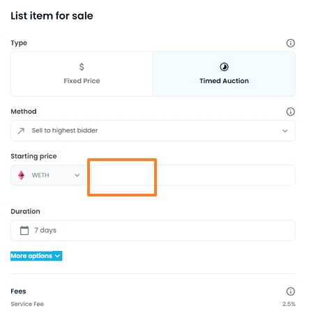 옥션가를 선택한다면 시작가를 넣어주시고