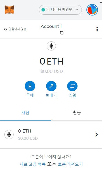 메타마스크로 연결했어요.