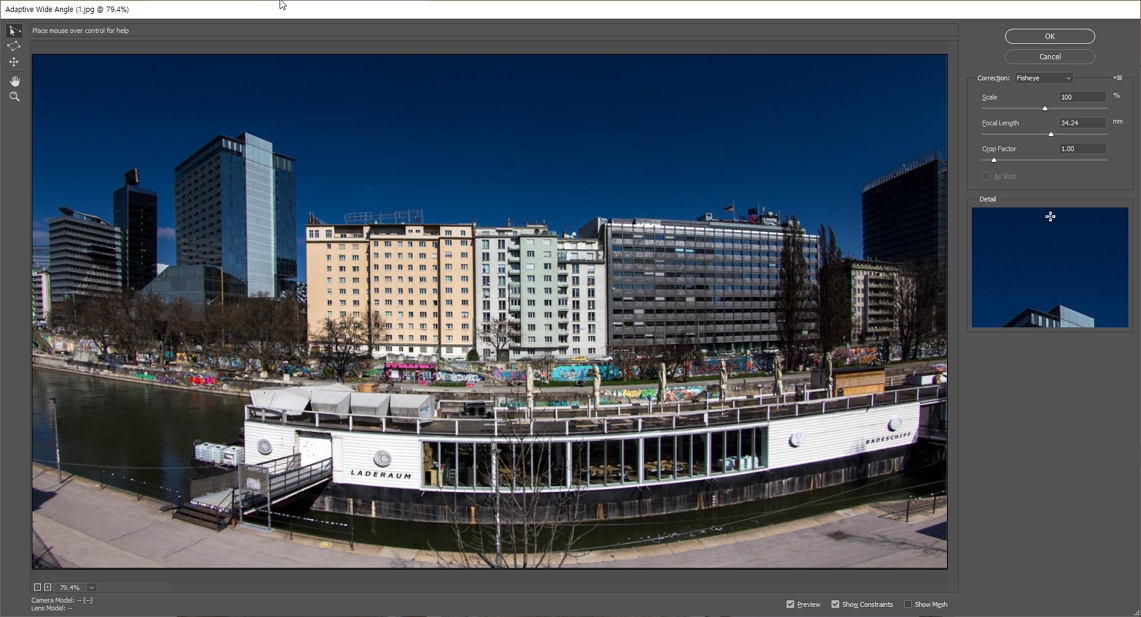 • Filter > Adaptive Wide Angle