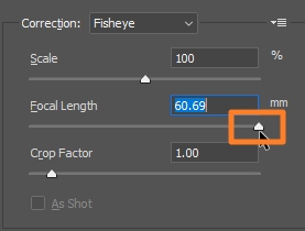 • Fisheye > Scale : 100% > Focal Length : 최대