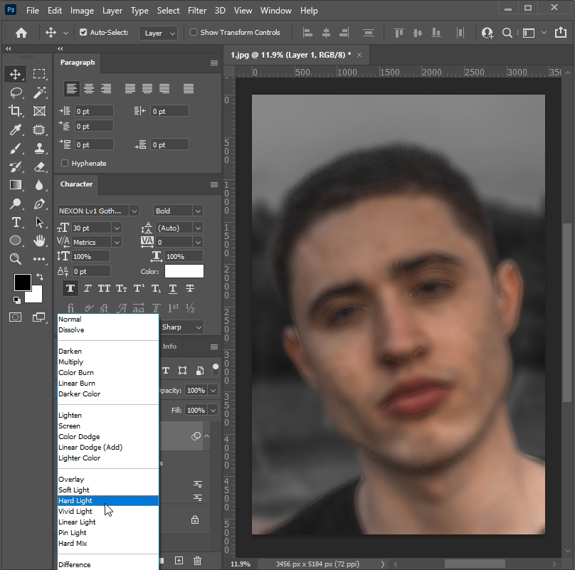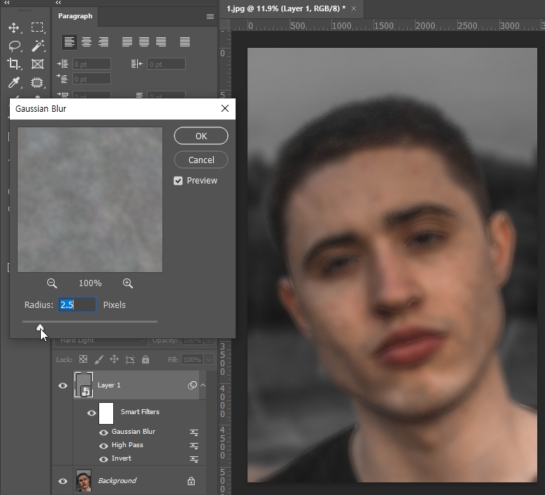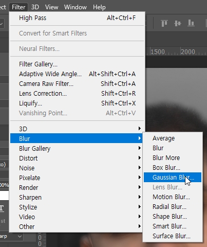 └ Filter > Blur > Gaussian Blur