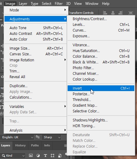└ Image > Adjustments > Invert