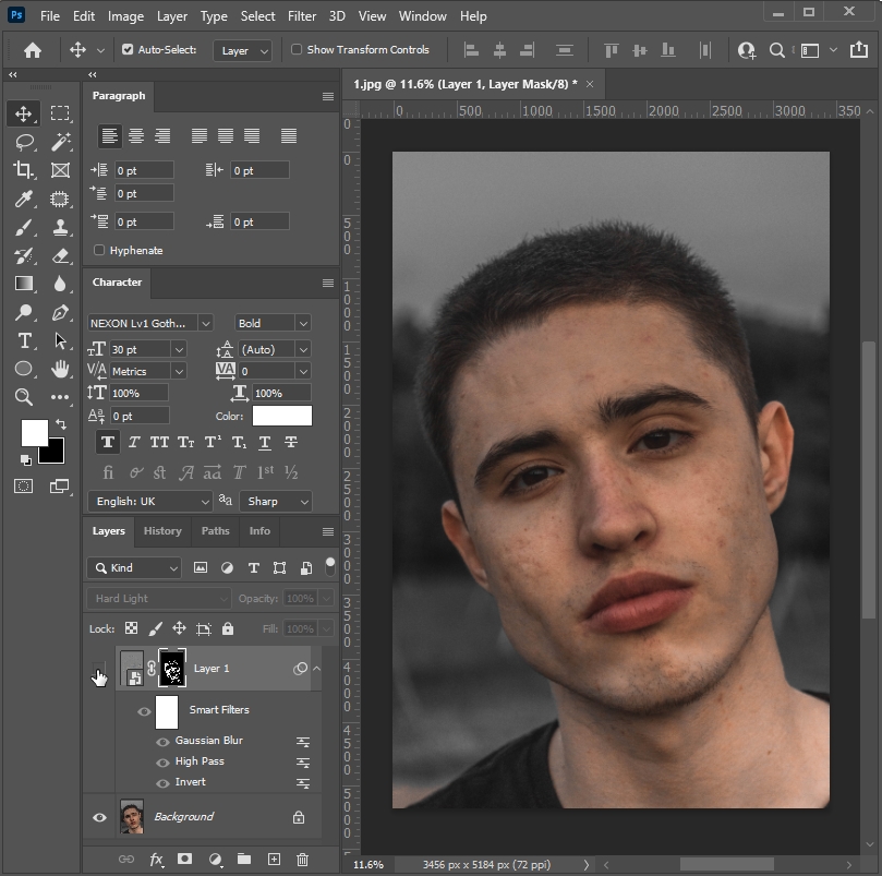 └ 사진의 자연스러운 보정을 위해 Gaussian Blur의 범위를 다양하게 바꿔보세요!