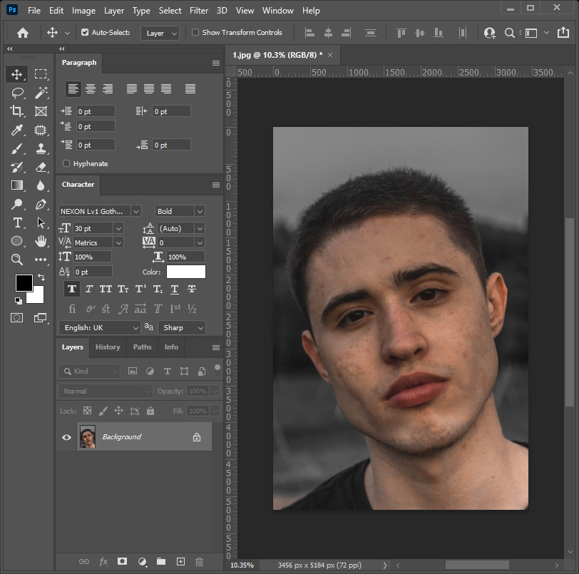 1. 포토샵에서 보정할 사진을 불러와 주세요.