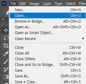 └ Photoshop > File > Open > 보정할 사진 선택 후, 열기