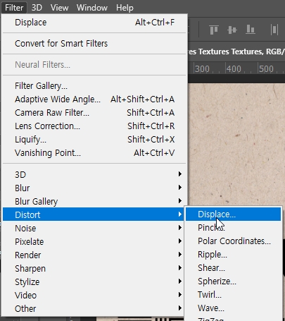 • Filter > Distort > Displace