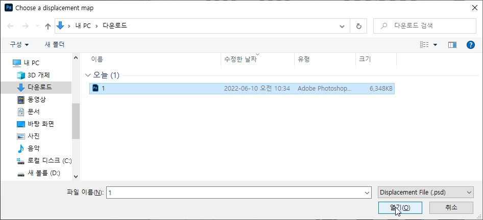 > 아까 저장한 PSD 파일 선택
