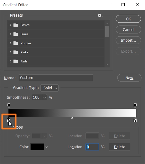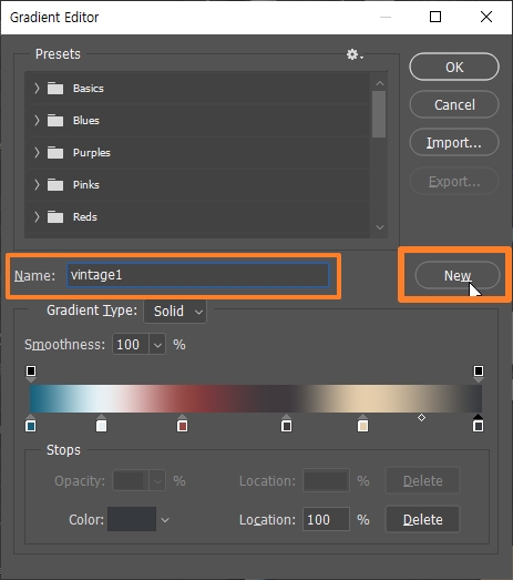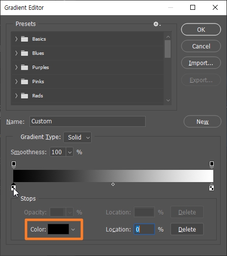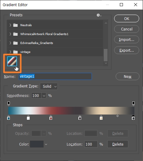 그라디언트 프리셋을 만들어 보겠습니다.