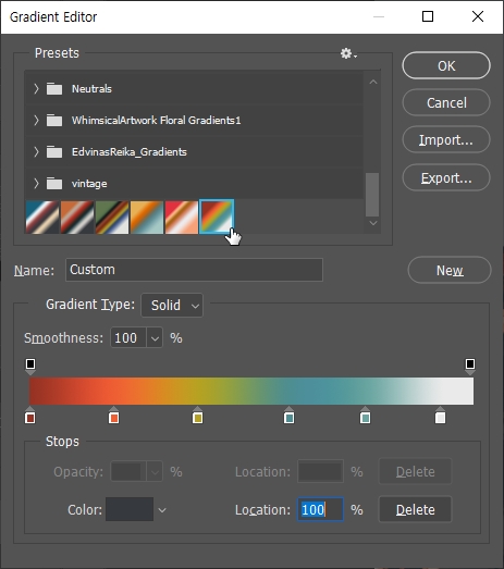 그라디언트 프리셋을 미리 만들어 두면,
