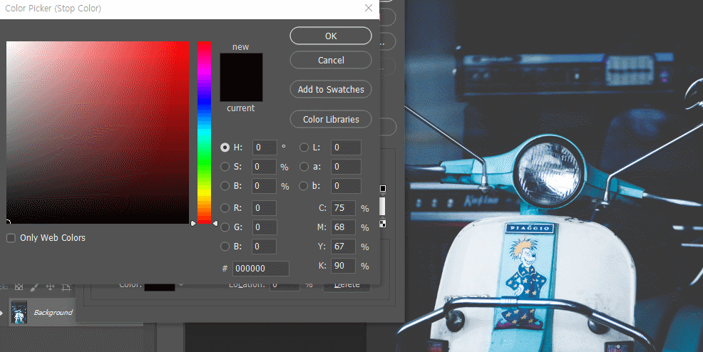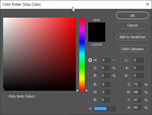 그라디언트의 색상 선택은