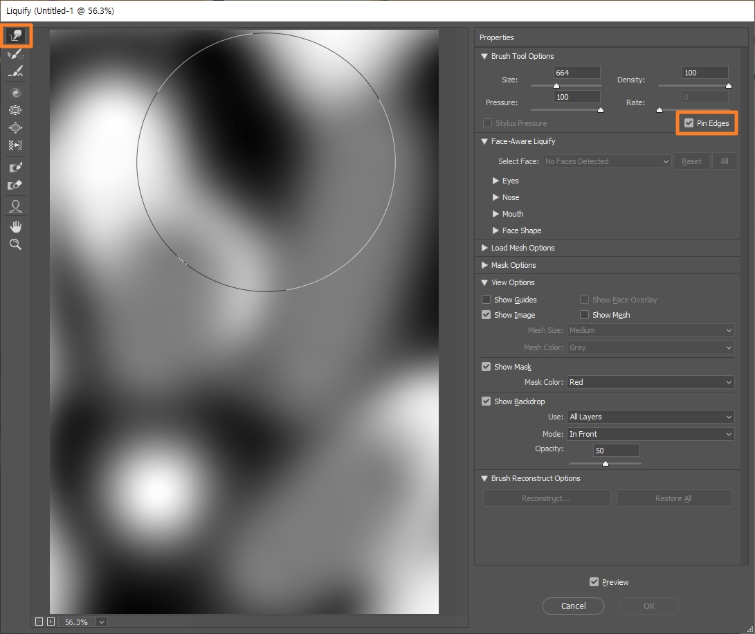 • Filter > Liquify > Pin Edges 체크