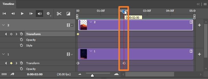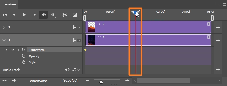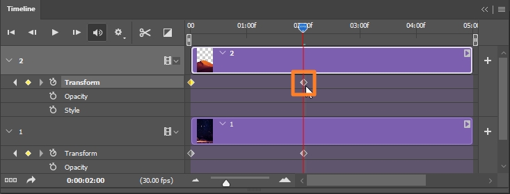 5. 첫 번째 사진의 Transform의 시작점을 만들어 주세요.
