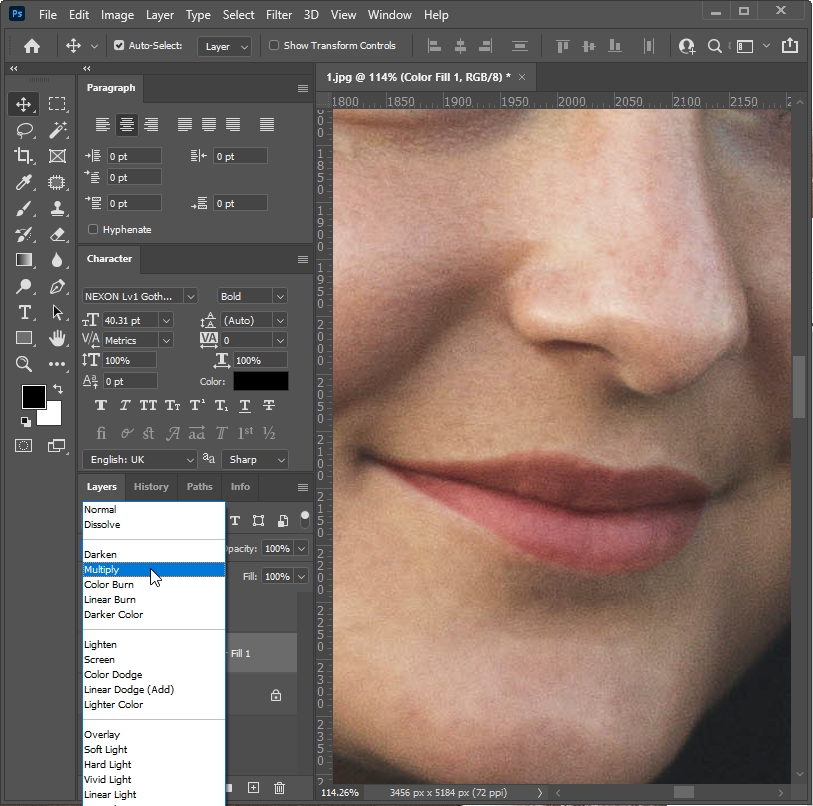 └ color layer선택 된 상태에서 Multiply효과 적용