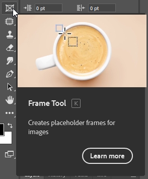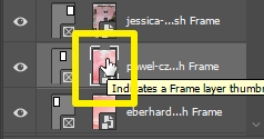 • Frame tool > 상단 툴에서 사각/원 모양 선택 > 마우스 드래그하여 프레임 만들기