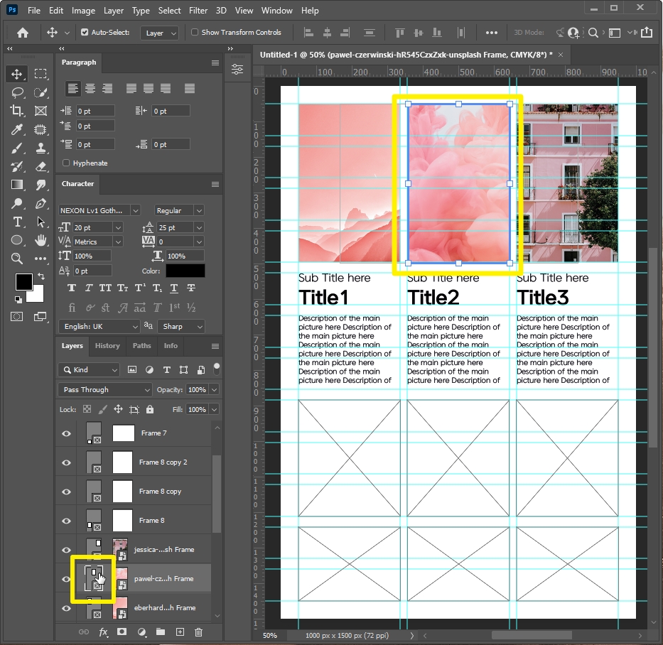 6. 프레임 안으로 사진을 넣어주세요.