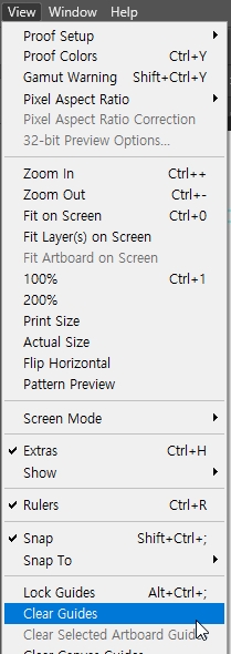 • Guide 모두 지우기 : View > Clear Guides