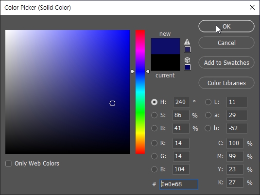 • 하단 New fill 아이콘 선택 > Solid Color > 원하는 은하수 컬러 선택