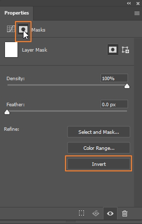 └ 열린 Curves의 Properties창 Masks 선택 > Invert
