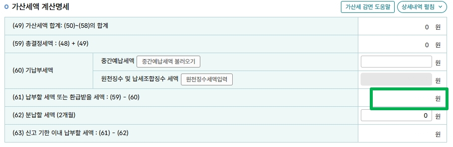 납부 세액이라면 해당 금액으로, 환급 세액이라면 마이너스(-) 금액으로 표기돼요.
