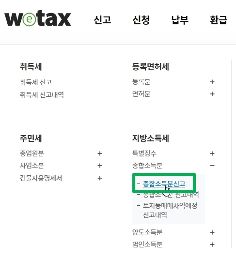 로그인 후, 신고> 지방소득세> 종합소득분> 종합소득분 신고의 카테고리에서