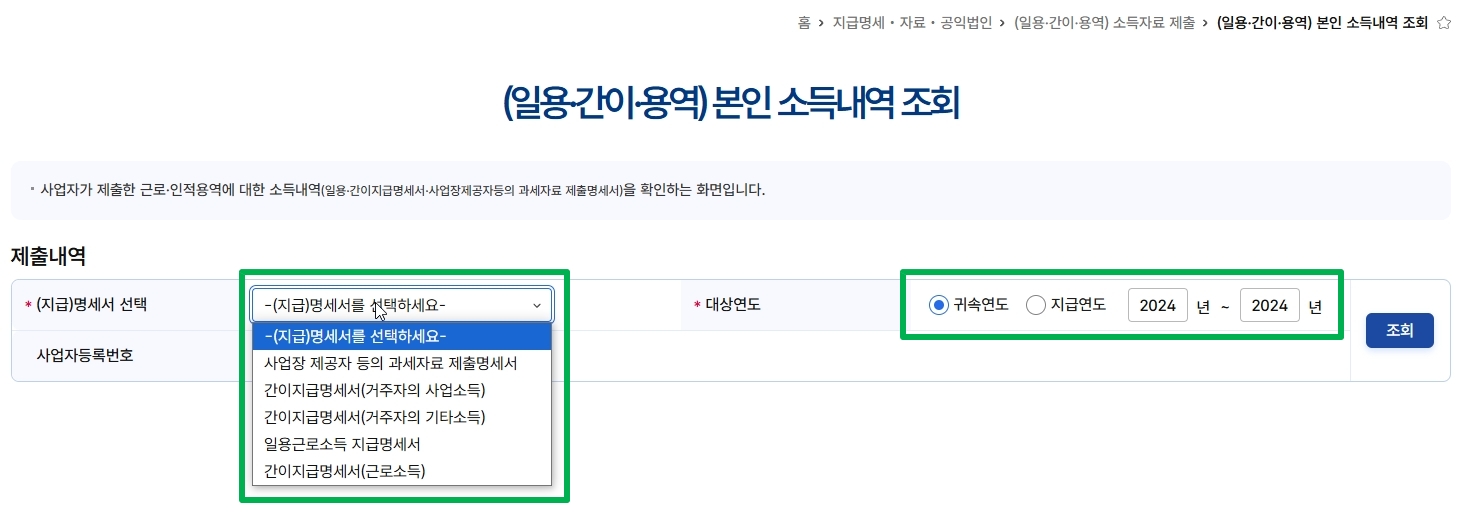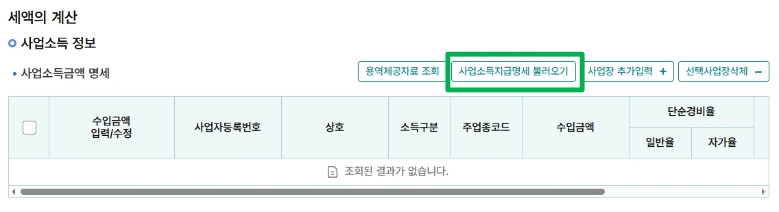 사업소득지급명세를 불러오면 전체 내역이 조회되기 때문에,