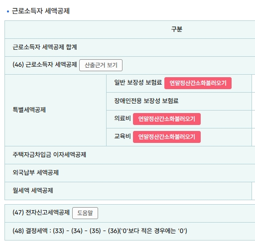 연말정산 불러오기를 통해 공제 부분을 채워주세요.