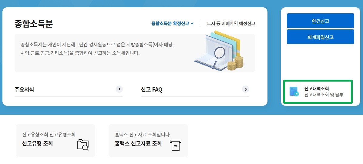 신고가 잘 되었는지, 납부내역서와 접수증을 확인하여 주세요.