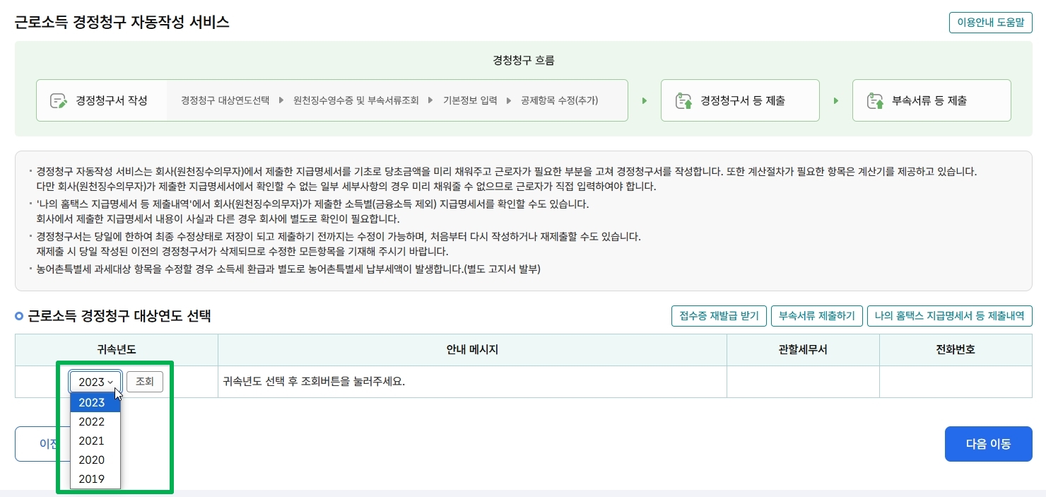 2. 이 전 원천징수영수증 다운받기