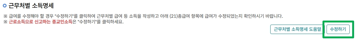 각 명세와 공제 내역의 수정하기 또는 계산기 부분을 눌러서 수정되어야 하는 부분을 기입해 수정해 주세요.