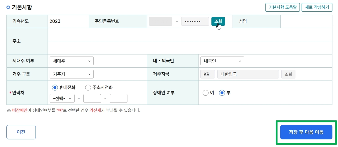 귀속 연도 시점에 본인의 주소 내 구청의