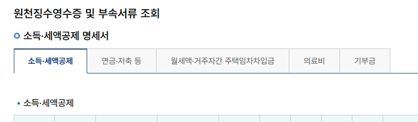 이때, 미리 다운받았던 원천징수영수증과 비교하고, 미리 확인했던 연말정산간소화 부분에서 누락된 부분이 있는지