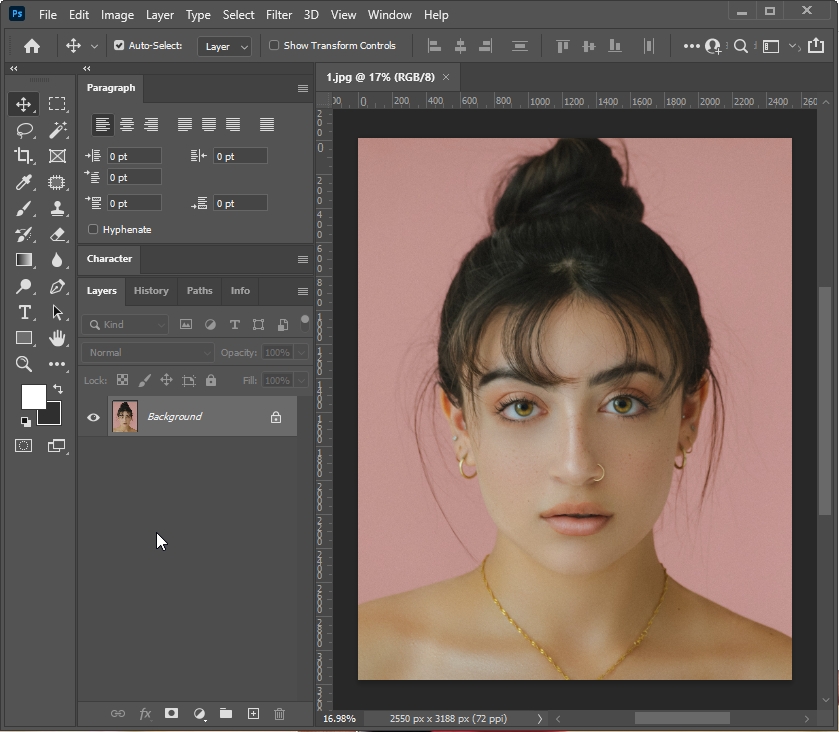 1. 포토샵에서 보정할 사진을 불러와 주세요.