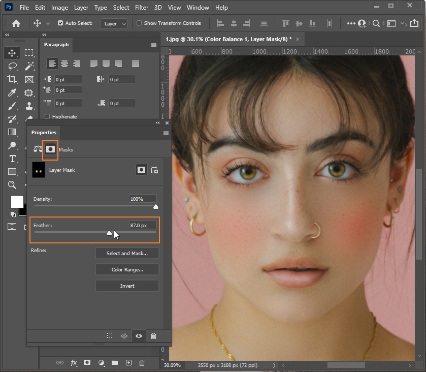 6. Feather를 조절해 자연스럽게 만들어 주세요.